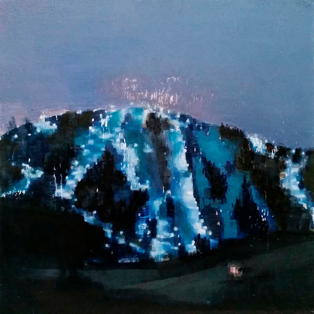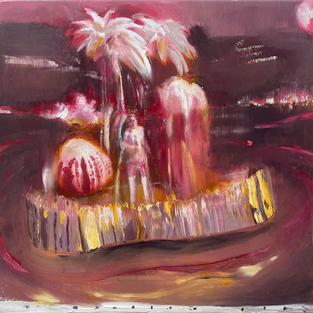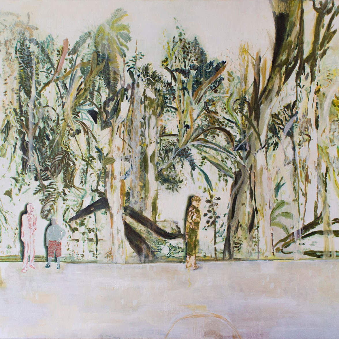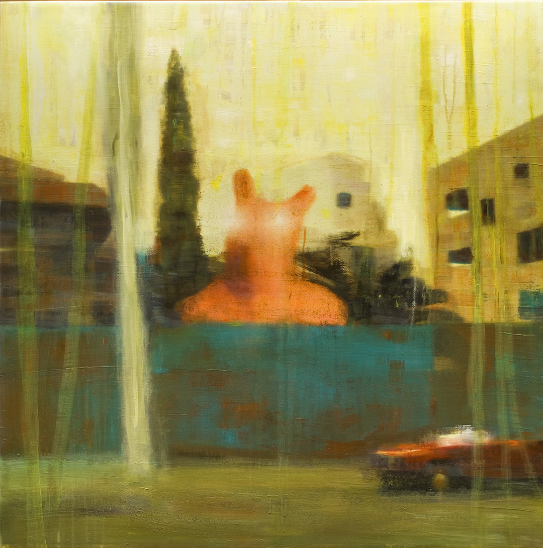 PROPIEDAD PRIVADA series of paintings depicts the formal tension between geometrical architectures and organic surroundings. Large fine houses are seen in motion, as if the watcher was rushing past. These are the thresholds of private properties: anything happening beyond the fence is no longer visible. No civics here, thank you!
