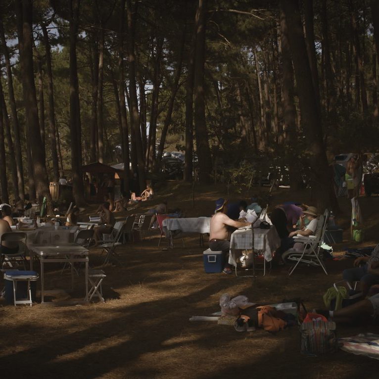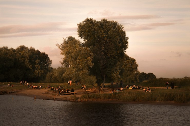 Beyond mere appropriation or picturesque photography, Landschap states an inhibited will to impersonate Dutch and Italian landscape tradition. The viewer is diconcerted and needs a second look to state the deception in a both playful and aesthetic way. A canonical bacchanal composition may conceal here a contemporary festival gathering…